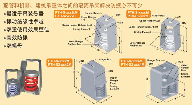 TOZEN PTH-S 和 PTH 系列减震器隔绝吊挂震源听得到和听不到的躁音和震动。